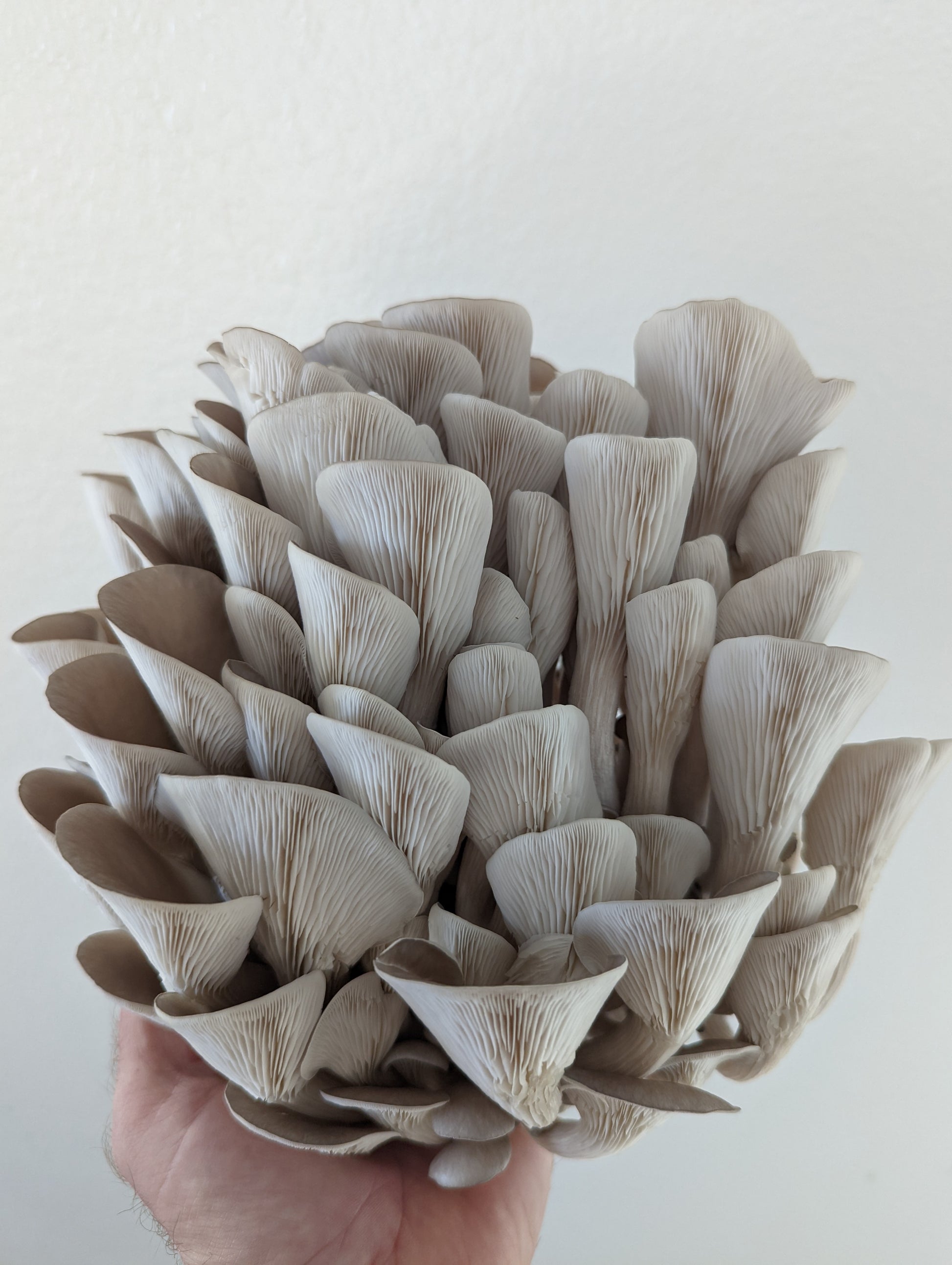 Blue Oysters are a mild woodsy flavored mushroom. They have a mildly meaty texture and lend themselves well to pastas, pizzas, egg dishes, etc. It’s an “any dish mushroom” and will bring enhanced flavors and textures to your meals. It can be cooked in any way.